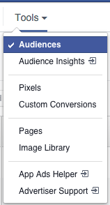 1. Click on the “tools” button at the top and from there, “audiences”.